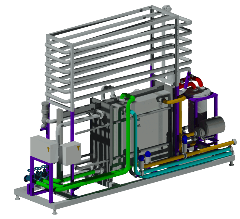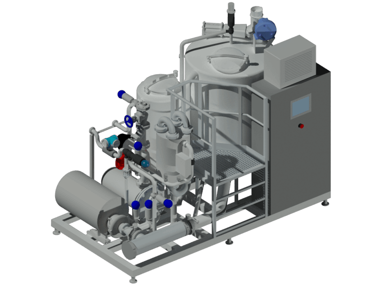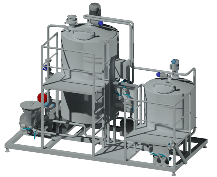 Combination of solutions simple syrup production in batch process or continuous system, with automatic adjustment of Brix up to 67º Brix, pasteurization time and filtering with filter bags to countries where sugar is white and refined with production capacity up to 25000L per hour. We provide dissolution at 85ºC or cold dissolution at 25º/41ºC depending on the rate and sugar quality. Automatic production System with load of sugar by screw conveyor or transport by vacum for a perfect dosing and a accurate final rightness of the Brix. All equipment presented may have an automatic programmed process individually